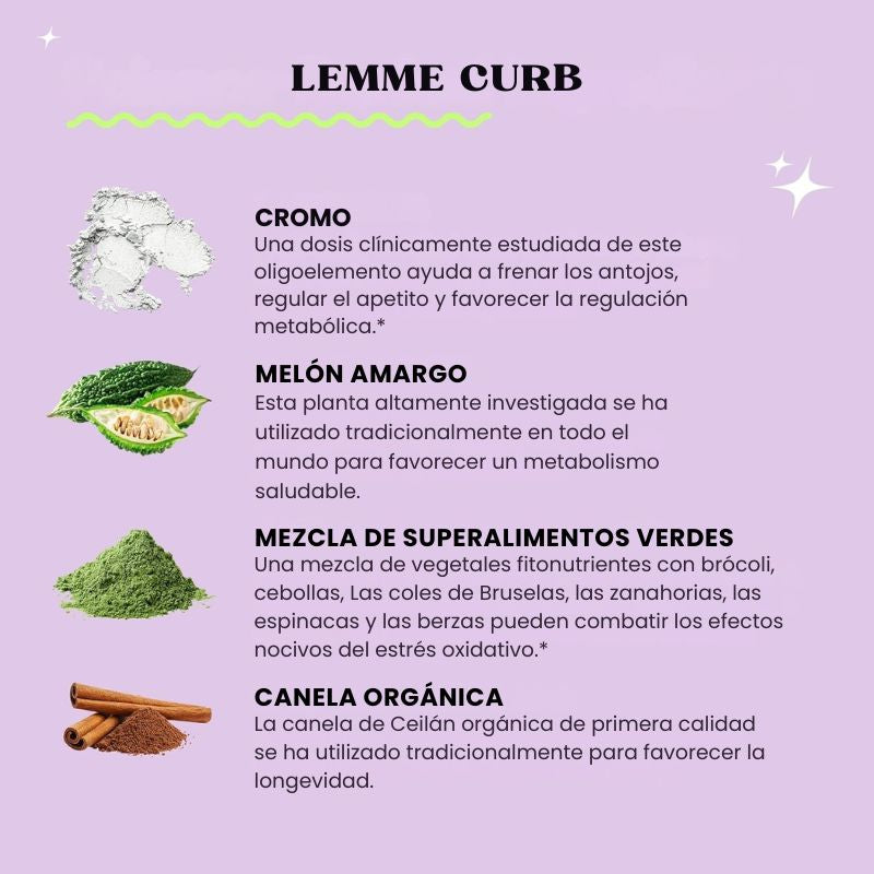 Lemme Curb & Burn combina extractos premium para ayudarte a activar tus procesos metabólicos naturales, favoreciendo la quema de grasa — especialmente la abdominal — mientras apoyas tu energía diaria.