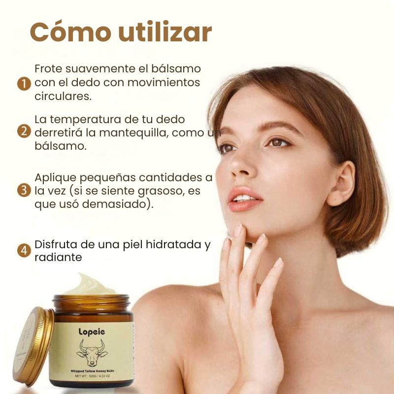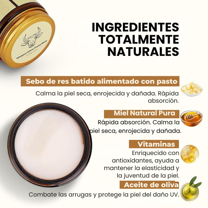 De la naturaleza a tu piel: nutrición profunda con sebo grass-fed y miel cruda.
